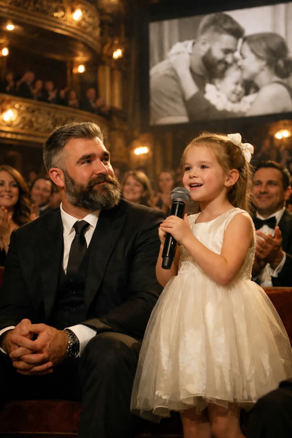 In the clip, Wyatt honors her father with heartfelt words that highlight not just his achievements on the field, but the kind of dad he is at home. The raw emotion in her voice, paired with Jason Kelce’s visible reaction, turned the moment into an unforgettable family highlight.