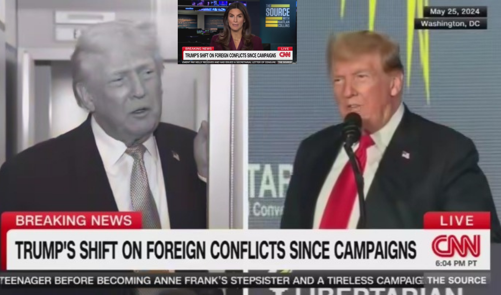 The news network compared what Trump has been saying over the last few days about foreign interventions to what he said during his campaign trail and running for office.
