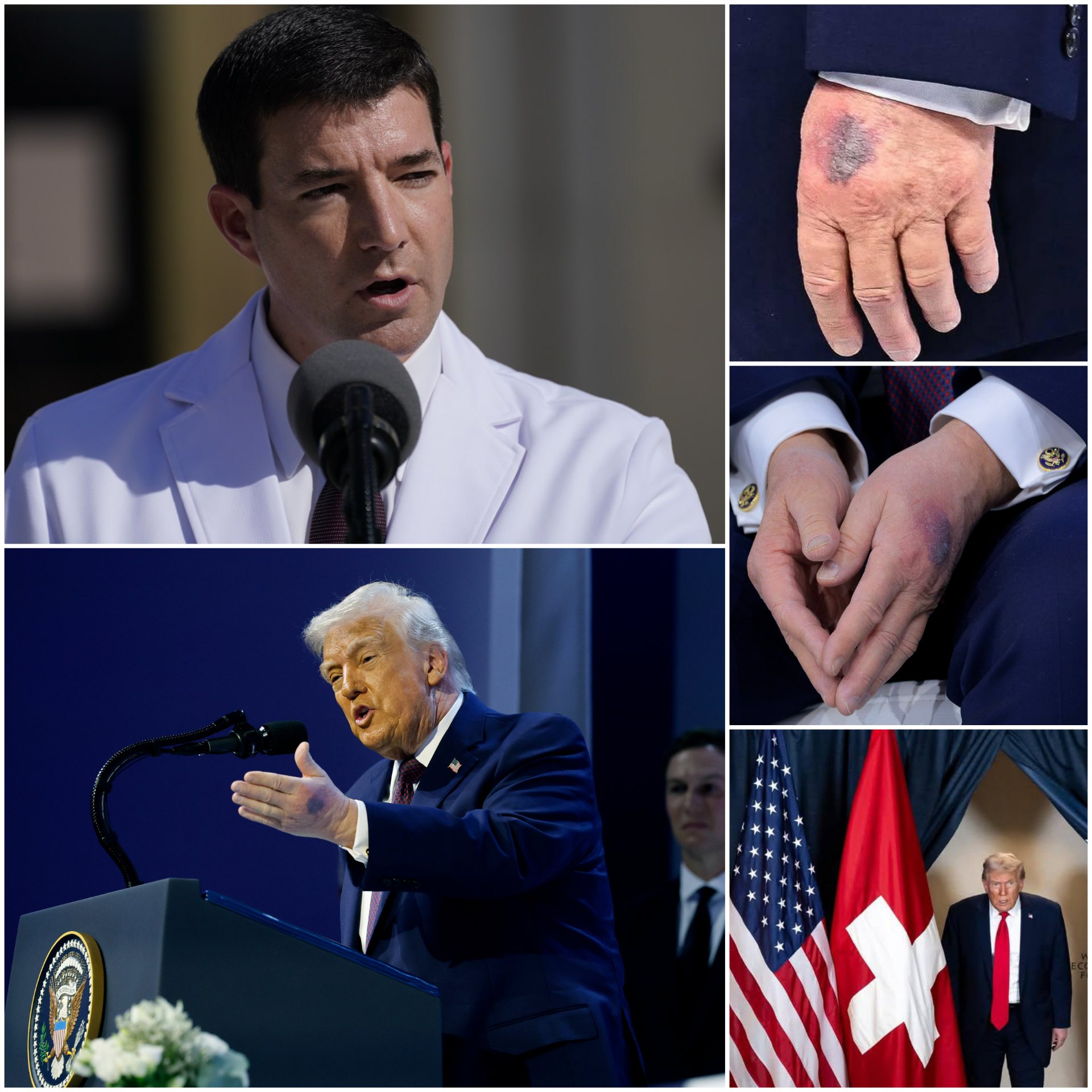 JUST IN: “It has worsened. I can no longer keep this from the American people.” The White House physician has broken his silence after Donald Trump appeared in Davos with large bruises on his left hand and visible discoloration. What he revealed next has stunned everyone: two dangerous chronic health diagnoses Trump allegedly told him to take to his grave. This changes everything. Watch closely before this story disappears.