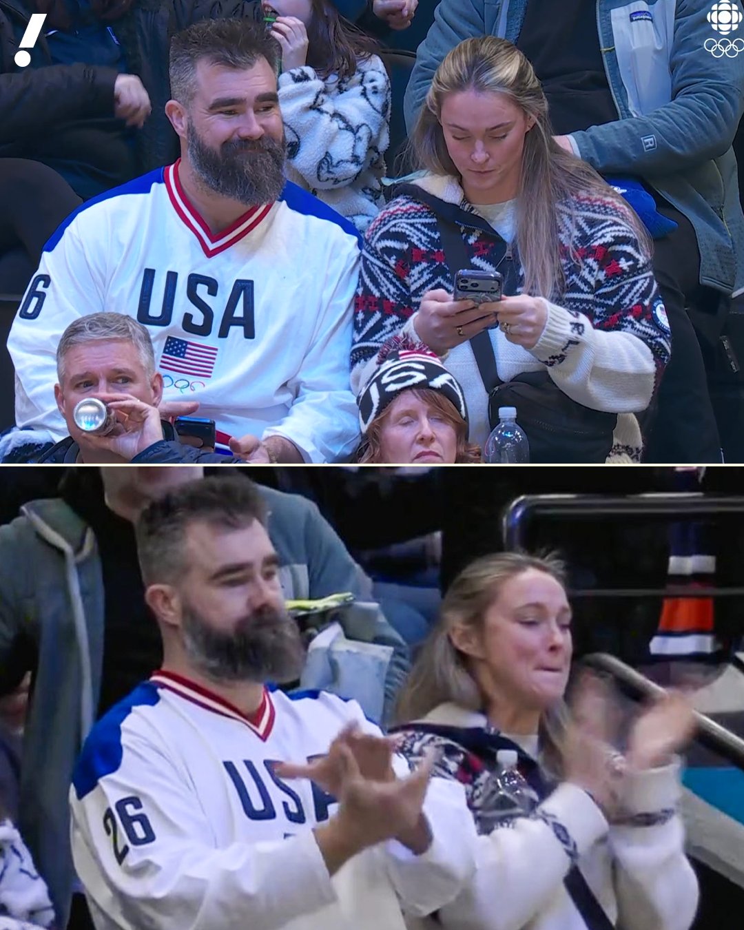 Eyewitnesses report that Jason, attending alongside wife Kylie Kelce, suddenly leaped into action to shield her amid a surge of fans rushing the lower stands after the U.S. team’s 5-0 win secured their gold medal berth.